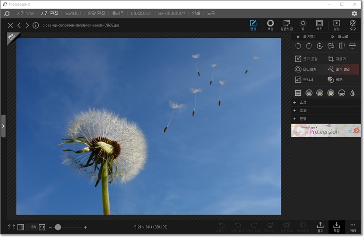 무료 다운로드를 이용해 대부분 기능이 사용 가능하고, PRO 버전은 사용하는 도구에 표시되어 있습니다. 당연히 무료 버전에서는 실행이 안 되겠죠.
