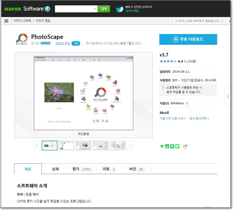 사진을 쉽게 보정, 편집할 수 있는 포토스케이프 다운로드할 수 있는 방법은 홈페이지에 접속해 링크를 타고 들어가는 것과, 네이버 등 포털 소프트웨어 자료실에서 내려받을 수 있습니다.
