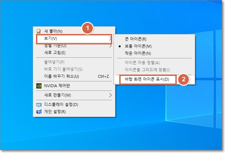 윈도우 10 바탕화면 아이콘 사라짐, 설정 방법
