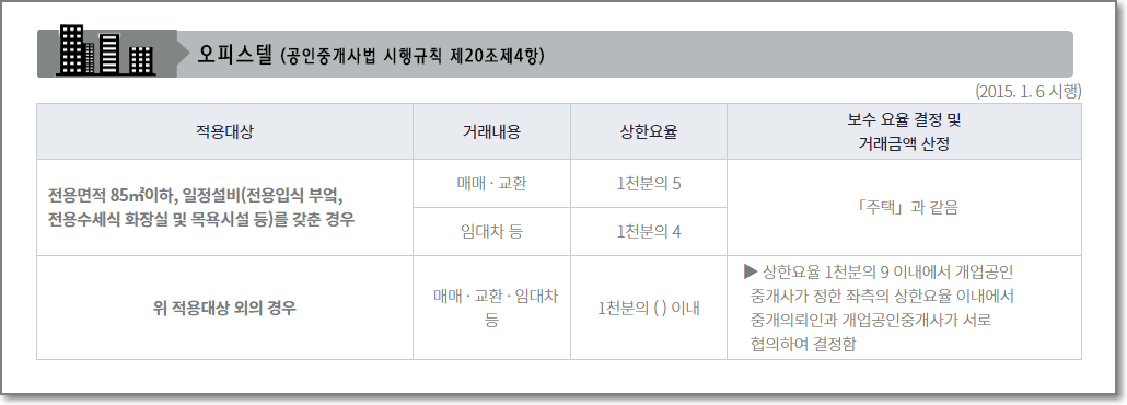 오피스텔 부동산 중개수수료(중개보수) 요율표