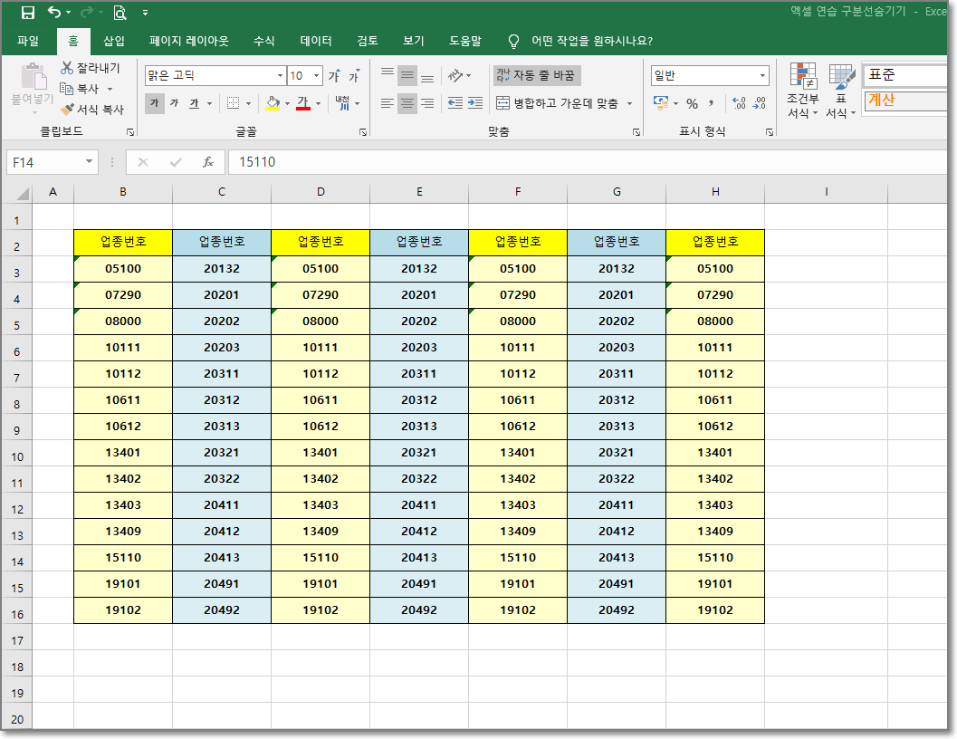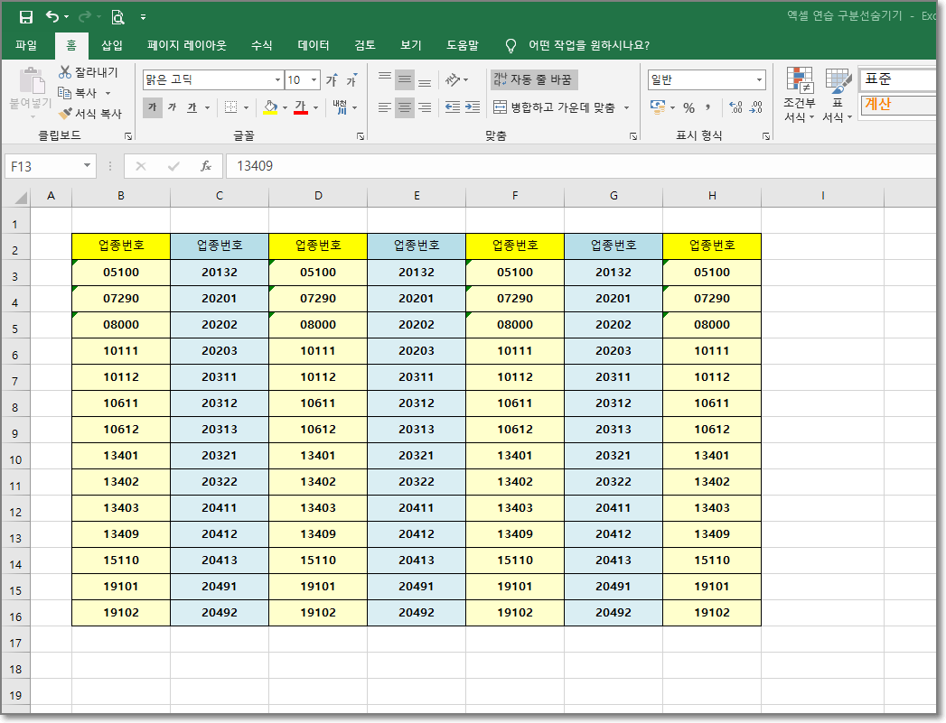 내용을 새로 만드는 것도 번거로워, 제가 가지고 있는 문서의 셀을 복사해서 붙여 넣은 것이니 의미를 두지 마세요^^