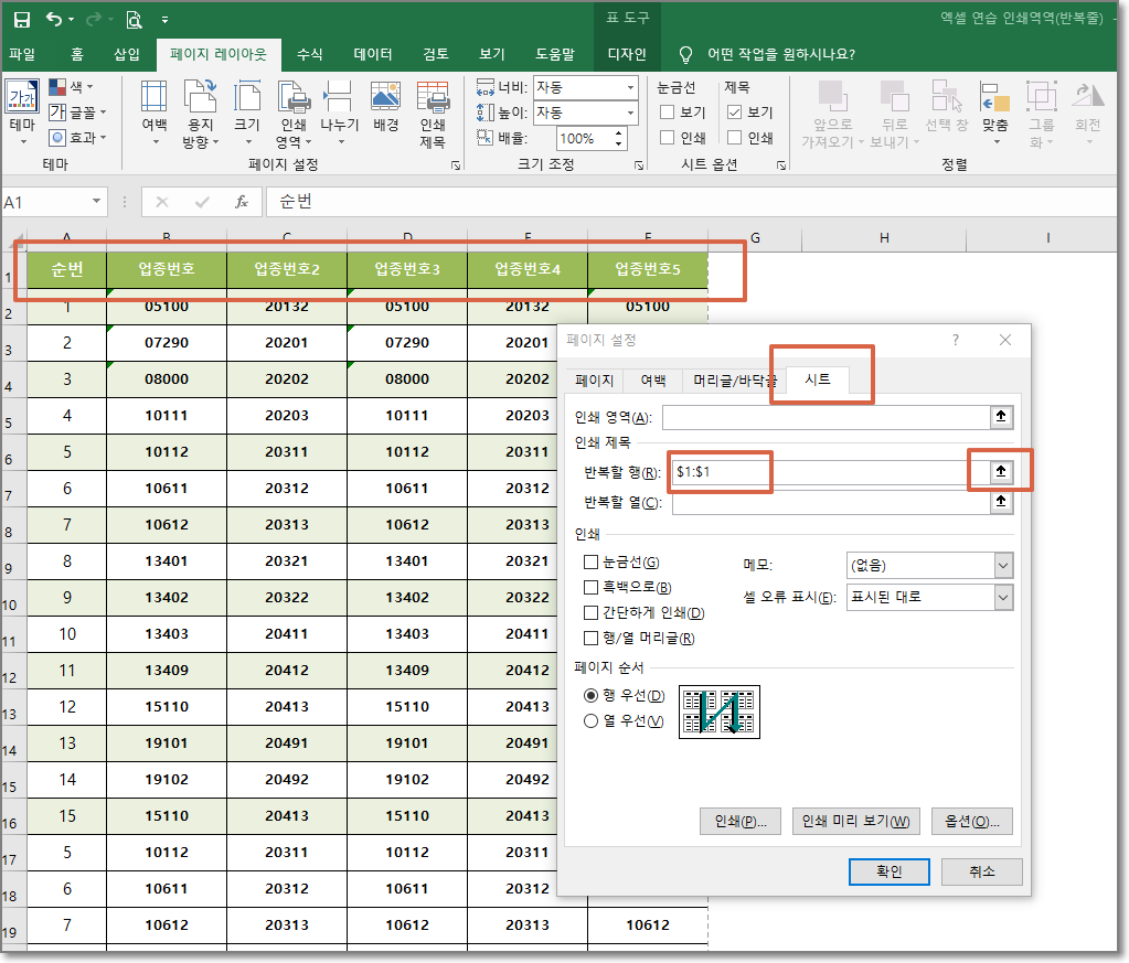 첫행 제목을 반복해서 인쇄하는 설정 방법을 알아봅니다.